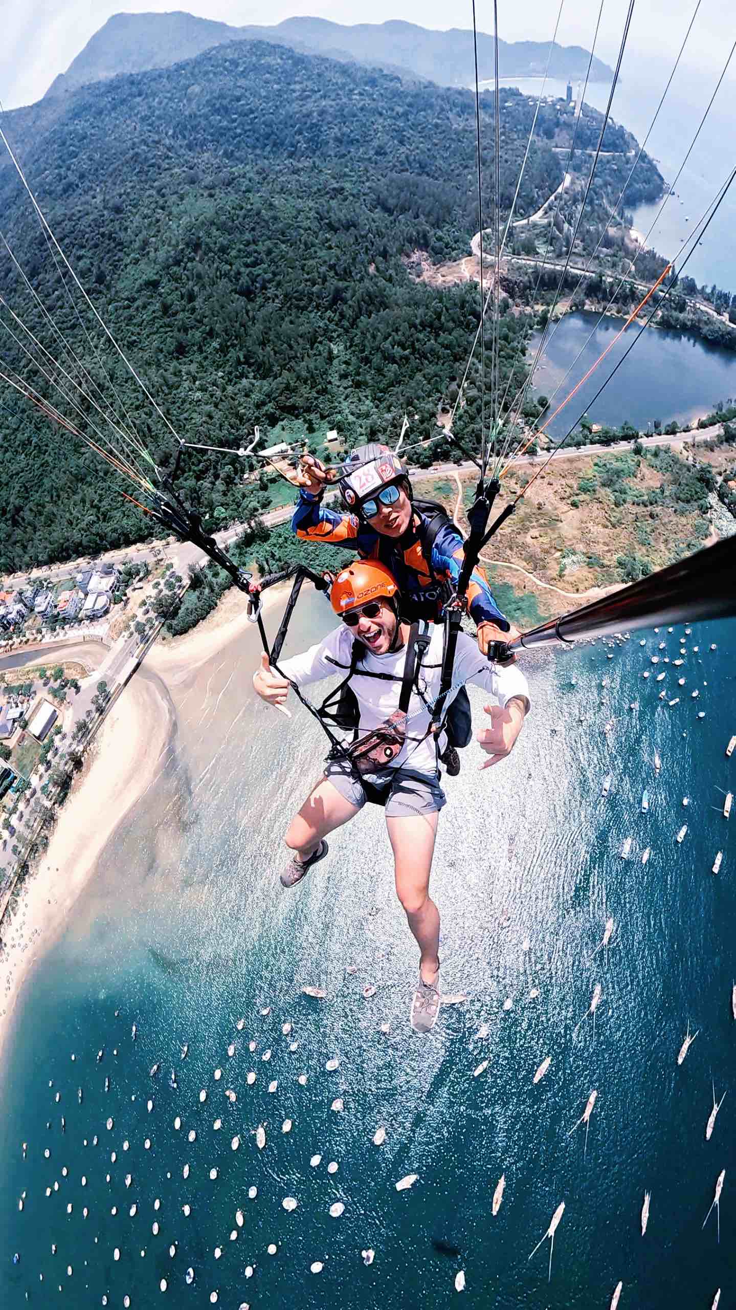 Sơn Trà mang lại một trải nghiệm bay độc nhất vô nhị tại Việt Nam, nơi bạn có thể cùng lúc chiêm ngưỡng sự hùng vĩ của núi rừng nguyên sinh và vẻ đẹp quyến rũ của một trong những bãi biển đẹp nhất hành tinh. Mùa bay đẹp nhất: Tháng 1 – Tháng 7. • Đặc điểm thời tiết & Cảnh sắc: Mùa xuân và hè rực rỡ: Tiết trời miền Trung lúc này nắng nhiều, bầu trời trong vắt giúp tầm nhìn xa vô tận. Luồng gió biển (sea breeze) thổi vào sườn núi rất ổn định, tạo điều kiện lý tưởng cho những chuyến bay êm ái. Hoàng hôn trên vịnh: Khoảnh khắc đẹp nhất là vào buổi chiều tà, khi mặt trời dần lặn xuống vịnh Đà Nẵng, nhuộm đỏ cả mặt biển và ánh đèn thành phố bắt đầu lung linh. Lịch bay: Hoạt động liên tục tất cả các ngày trong tuần (vui lòng đặt lịch trước để Mebayluon sắp xếp phi công). Loại hình: Dù lượn truyền thống (PG). • Những ưu điểm vượt trội khi bay tại Sơn Trà cùng Mebayluon: Vị trí đắc địa: Điểm tập kết ngay bãi biển Sơn Trà cực kỳ thuận tiện cho du khách. Tầm nhìn "triệu đô": Thu trọn toàn cảnh bán đảo Sơn Trà, chùa Linh Ứng, bãi biển Mỹ Khê và những cây cầu biểu tượng của Đà Nẵng từ góc nhìn chim bay. Dịch vụ trung chuyển: Có xe đưa đón khách từ điểm hạ cánh lên đỉnh núi. Thời gian: Bạn chỉ mất 40 phút để hoàn thành trọn vẹn hành trình di chuyển và bay dù lượn.